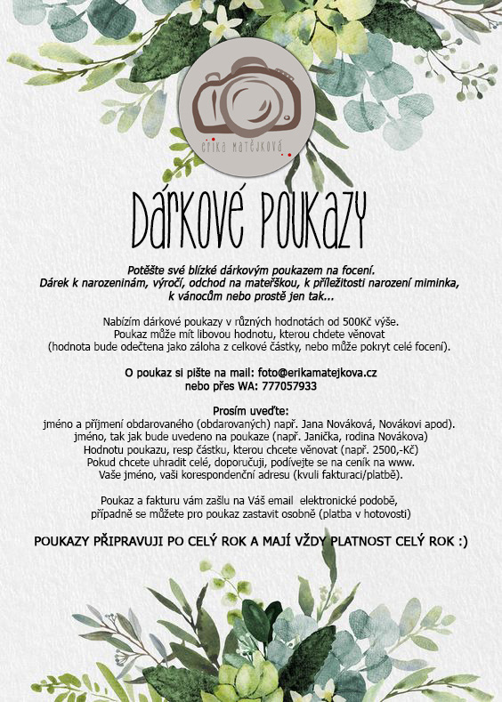 K tomu, abyste poukaz získali, stačí zaslat emailem na foto@erikamatejkova.cz následující informace: