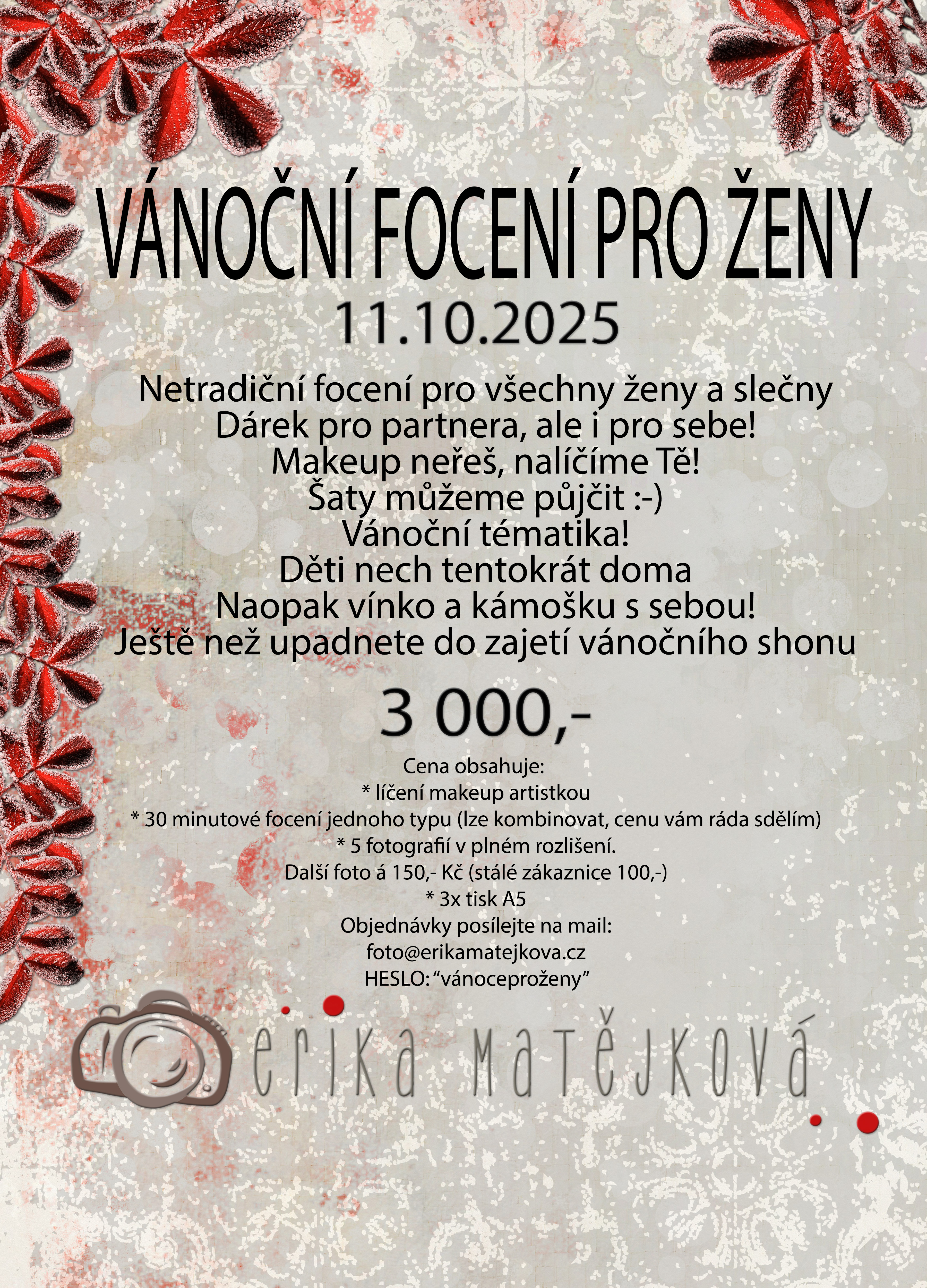 NOVINKA!!! LETOS POPRVÉ VÁNOČNÍ FOCENÍ POUZE PRO ŽENY! S profesionálním líčením
